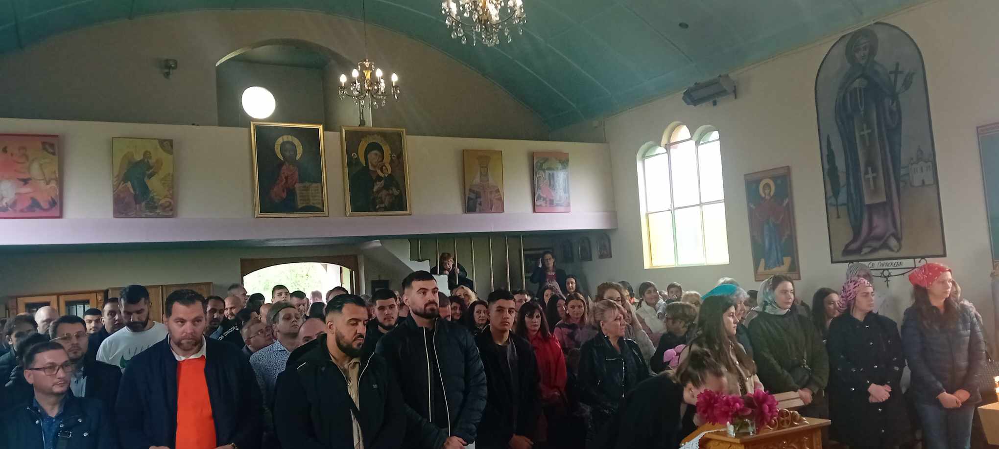 Црква Светог кнеза Лазара у Валмонту била је мала за све вернике који су желели да присуствују Пасхалној литургији у овом храму. Радост Христовог Васкрсења и осећај победе живота над смрћу настављена је и након богослужења, за време благосиљања јаја и свечаног ручка.
