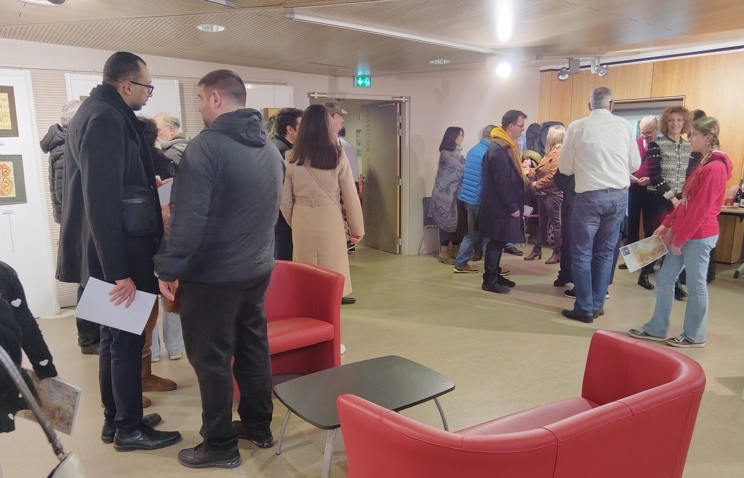 У недељу 16. фебруара, у Centre culturel Ferme du Charmois, Vandoeuvre-lès-Nancy били смо учесници великог духовног славља – отварања изложбе Православне црквене уметности Вечност у времену. Изложба је реализована трудом парохија Нанси, Валмонт и Бетинг из Лорене, са благословом Његовог Преосвештенства Епископа западноевропског Јустина и уз помоћ Епархије западноевропске, и под покровитељством Управе за сарадњу са дијаспором и Србима у региону Министарства спољних послова Републике Србије. Уводну реч дали су Драган Маричић, члан ЦО парохије Св. Николе у Нансију, Жан Клод Ларше, један од најзначајнијих савремених православних богослова и председник ЦО парохије Св. кнеза Лазара у Бетингу, протојереј Марко Дабић, парох лоренски и конзул Републике Србије у Стразбуру Славољуб Царић.