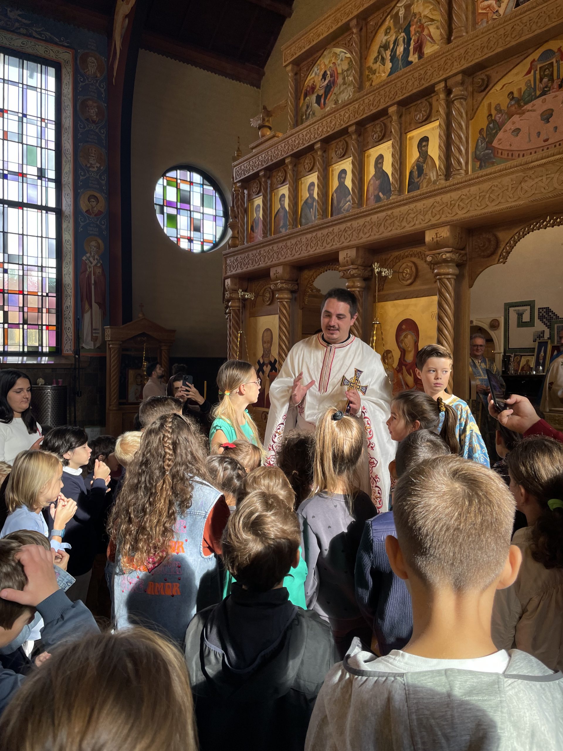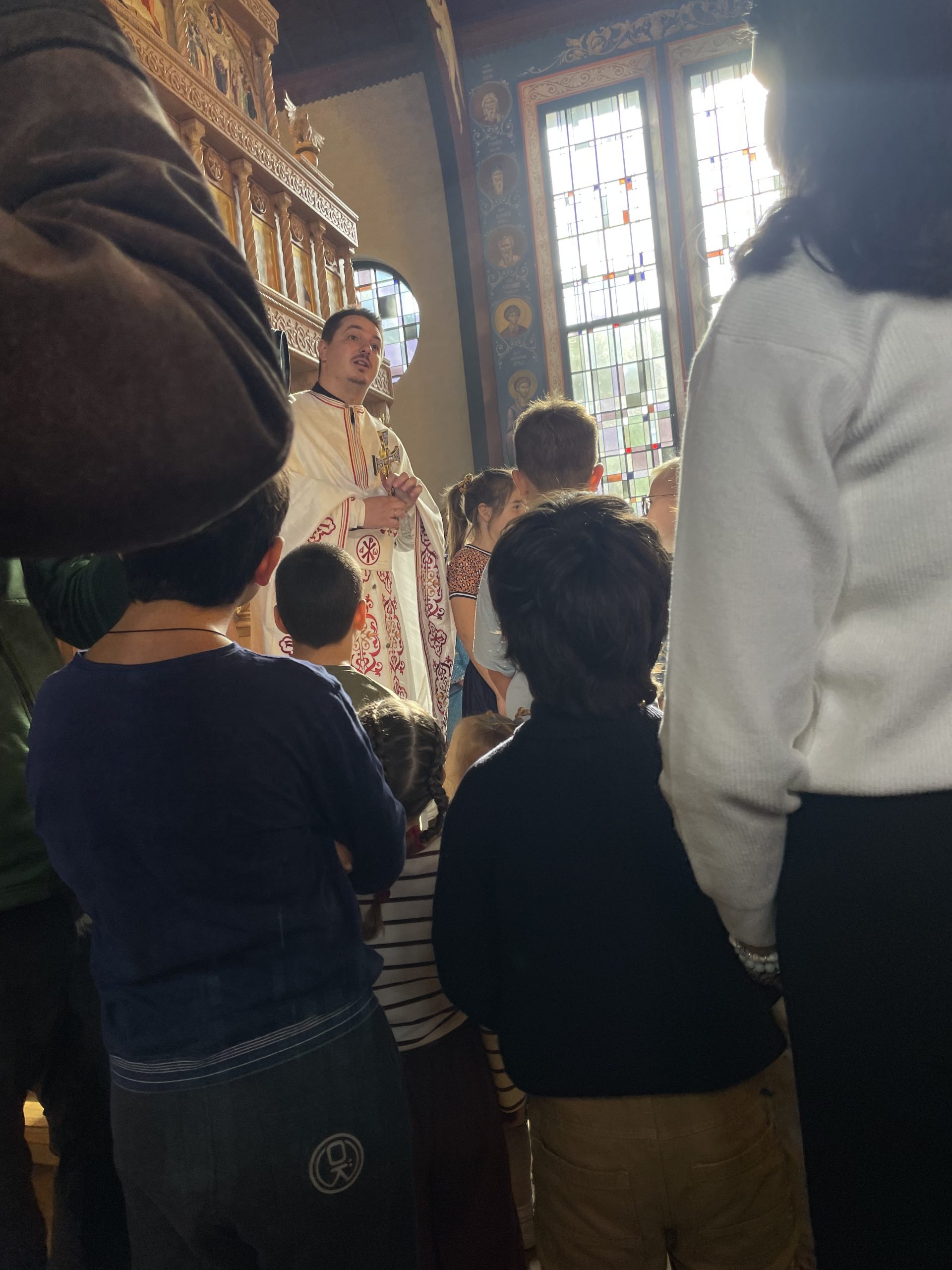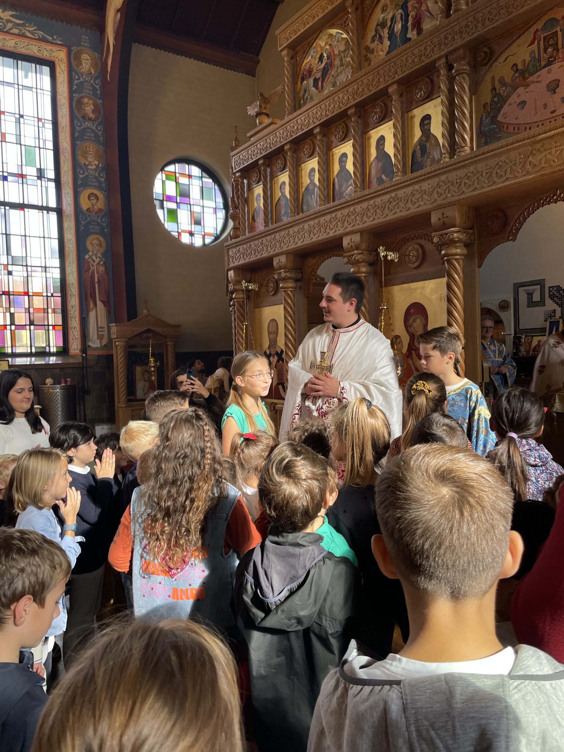 На литургији су се деци обратили: отац Крсто, који је одржао беседу, затим отац Милан, који је родитељима и деци упутио уводно слово и позвао их на Други српски православни дечији сабор који ће се одржати у његовој парохији у Антверпену 26. септембра 2026. године, а на крају и отац Горан, који је одржао уводну беседу на холандском језику.