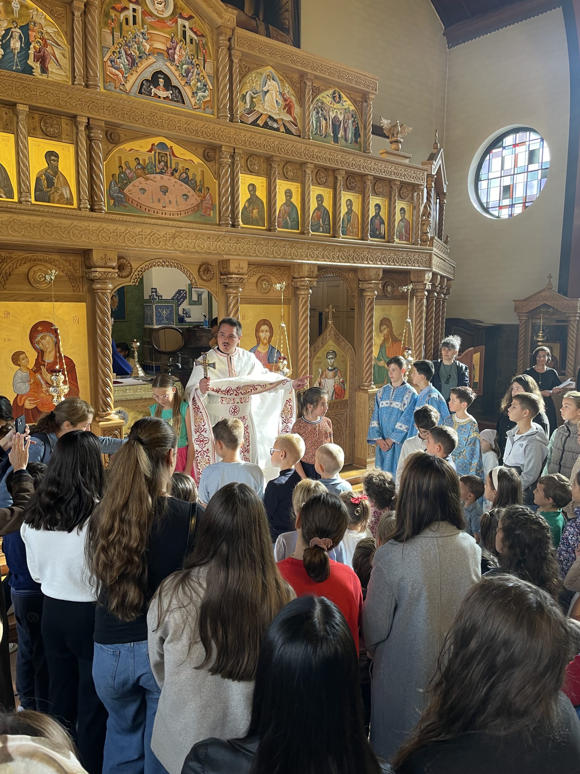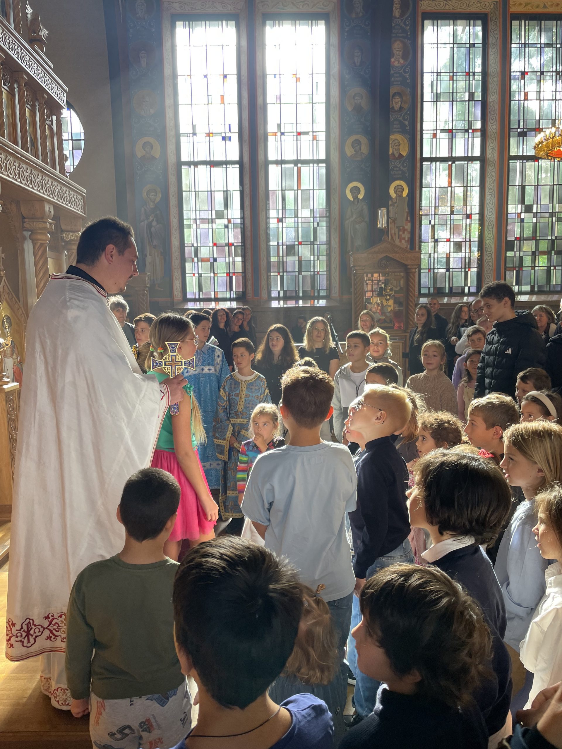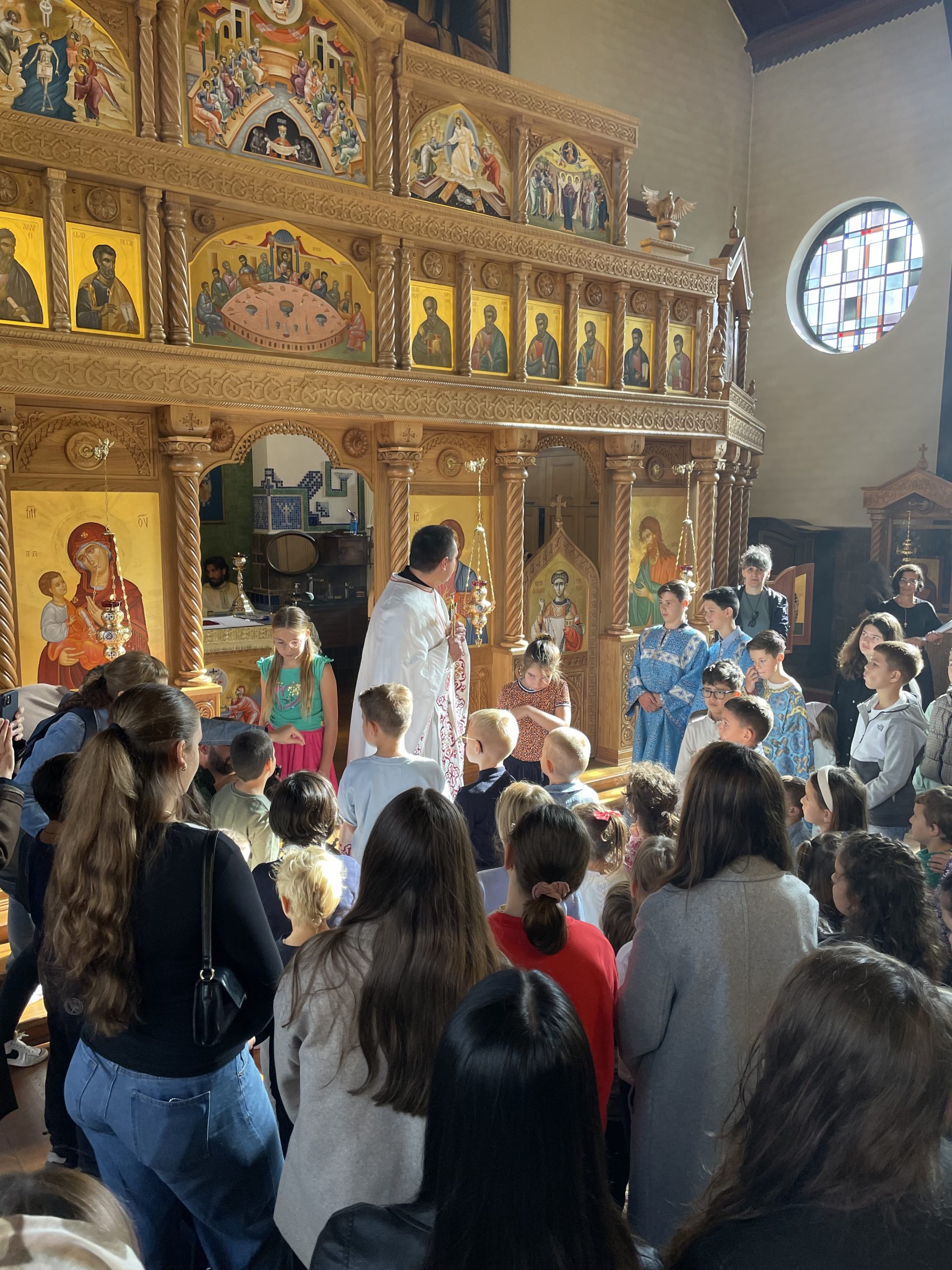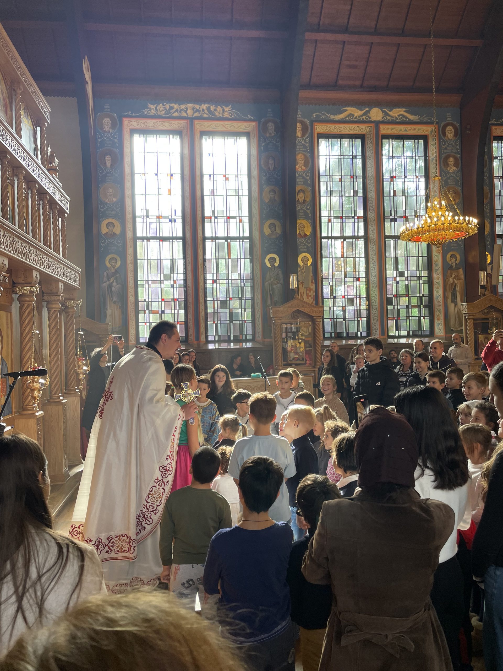 На литургији су се деци обратили: отац Крсто, који је одржао беседу, затим отац Милан, који је родитељима и деци упутио уводно слово и позвао их на Други српски православни дечији сабор који ће се одржати у његовој парохији у Антверпену 26. септембра 2026. године, а на крају и отац Горан, који је одржао уводну беседу на холандском језику.