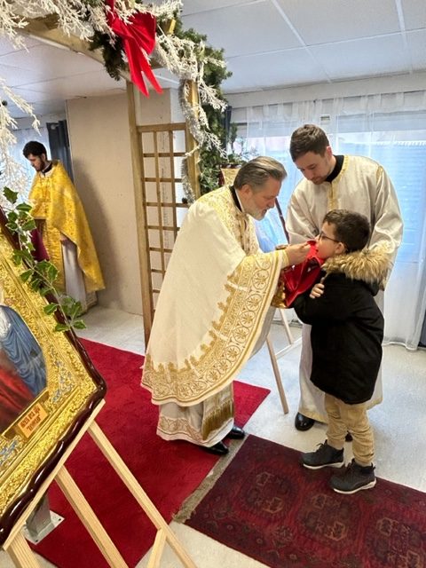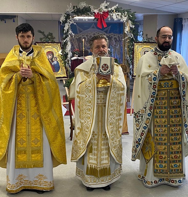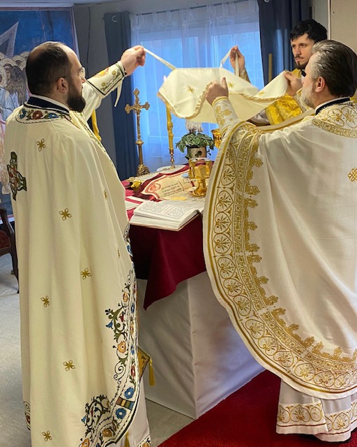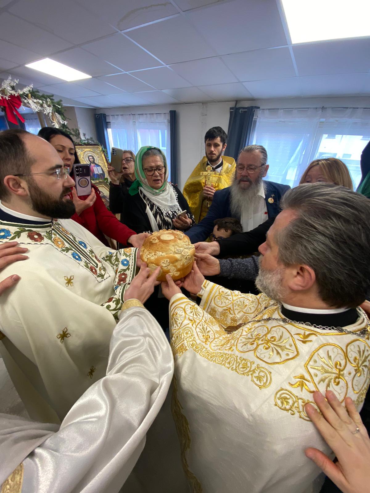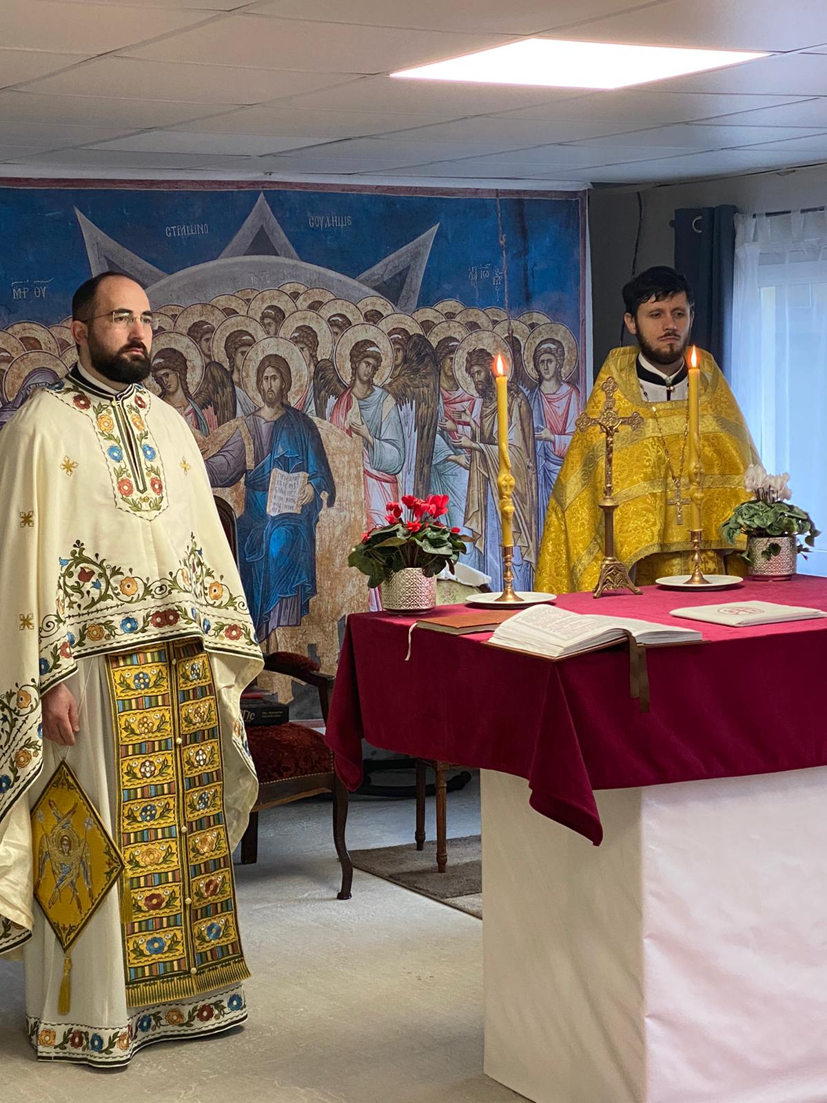 Свету Литургију служио је протојереј-ставрофор др Мирослав Симијоновић, настојатељ Светоуспенског храма у Цириху и професор на теолошком факултету у Либертивилу, уз саслужење свештенослужитеља Виктора (РПЦ) из Стразбура и Максима.
