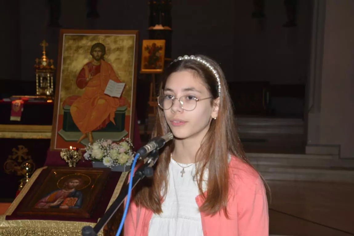 Свештеник је позвао госпођу Жељку Ракочевоћ да својом ауторском песмом о Светом Сави настави са Светосавским програмом, а даље вођење програма препустио је протиници Ивани, Ани , Христини, Марији и Тари. У једночасовном трајању програма девојке из хора су отпевале неколико песама, уследио је комад о Светом Сави и ћирилици, који је Милош Ракочевић са децом лепо одиграо, па две нумере на клавиру у извођењу Стефана Бучића и две нумере на гитари у извођењу Милене и Матеја Животић. Ева, Петија и Венеса су отпевале песму Маријо славна и на крају КУД Косовски Божури извео је сплет врањских игара у кореографији Марине Антић измамивши велике аплаузе.