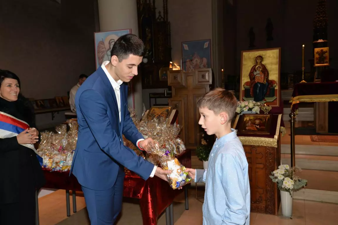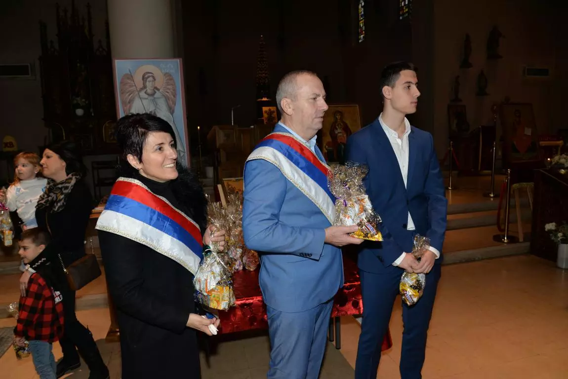 По обављеном обреду резања Славског колача уз Славски ручак настављен је Светосавски програм. Свештеник је на почетку програма у име Парохије и домаћина Славе поздравио све Госте и пожелео им пријатан ручак. А потом традиционално као и сваке године о Светом Сави захвалио је свима који на различите начине помажу својој цркви; приложницима, дародавцима, појцима, помоћницима у олтару, занатлијама на помоћи око уређења цркве, као и радницима у цркви који се старају о послужењу верника и чистођи храма. Велику захвалност упутио је и учитељици Српског језика Драгани, као и Снежани и Наташи које раде са малом децом у време богослужења и прате Свету Литургију у припрати храма.