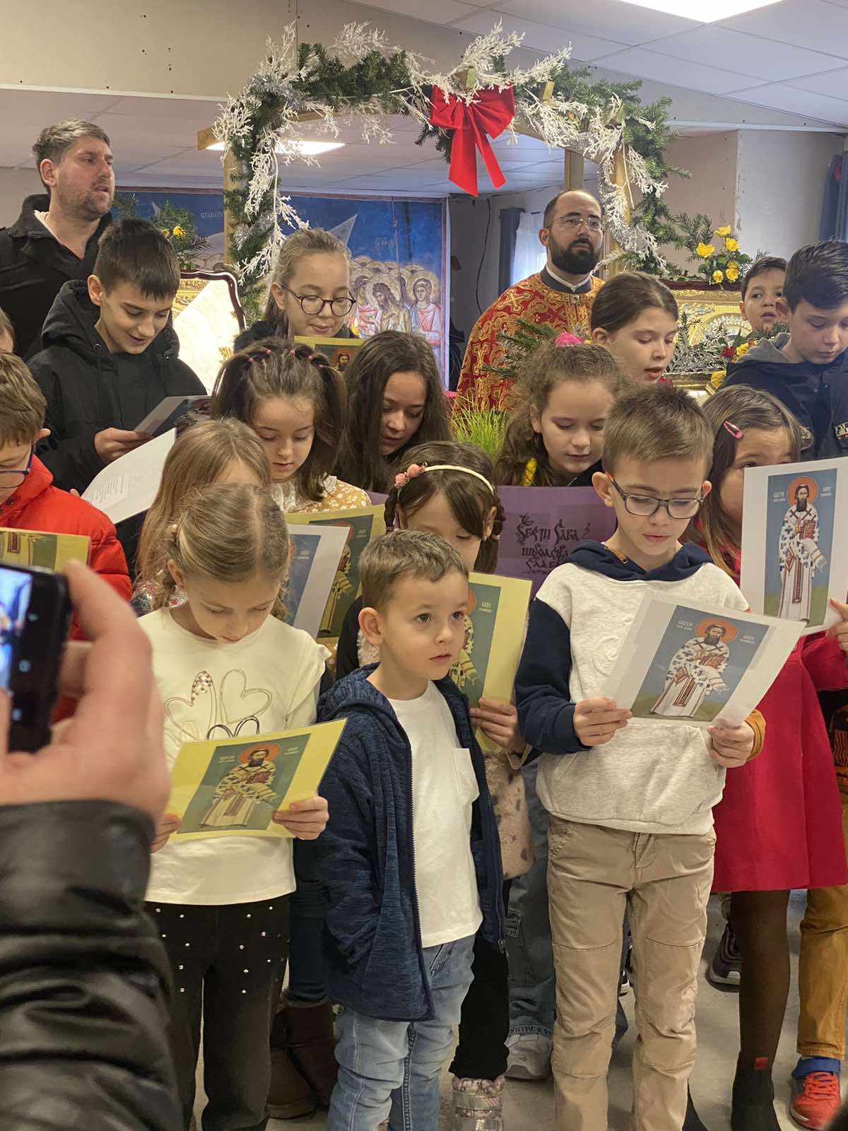 Велики број деце српске допунске школе сабрао се на сам празник Светога Саве, у храму Светог Архангела Михаила, да би пре свега присуствовао Светој Литургији, коју је служио протосинђел Максим а затим да би окупљенима приказали свој припремљени програм.