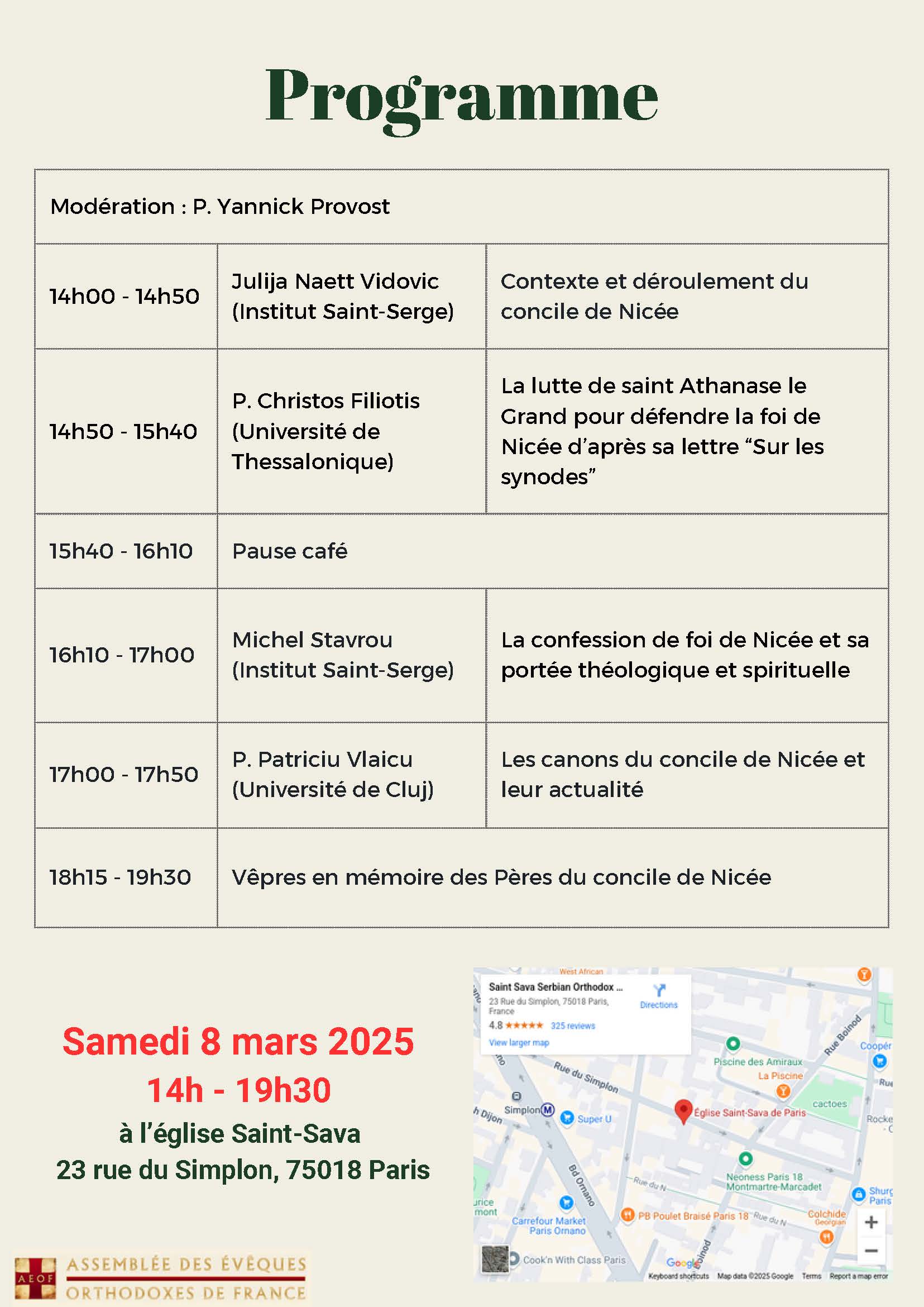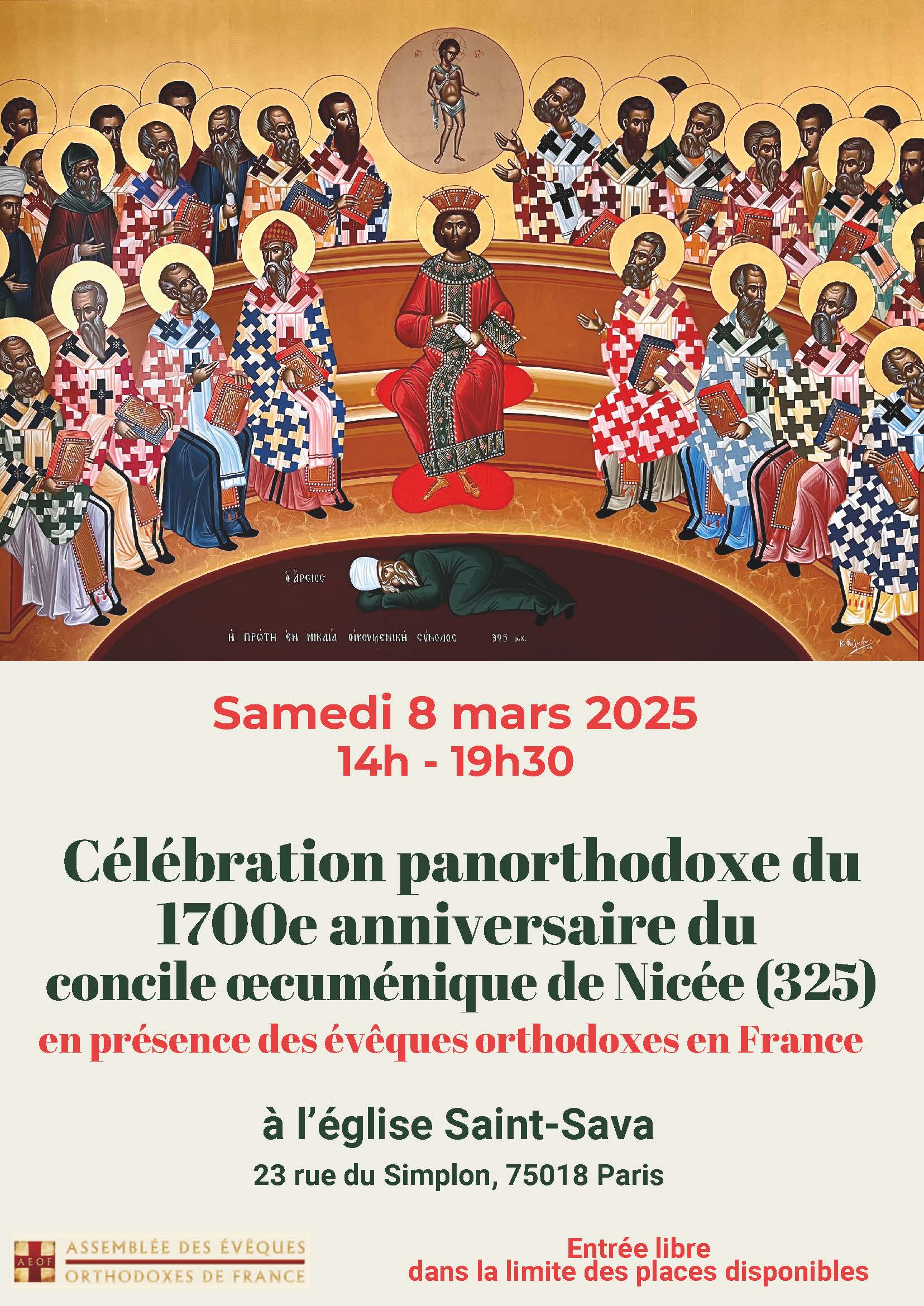 На Теодорову суботу, 08. марта 2025. године благословом Епископа париског и западноевропског Господина Јустина, у свечаној сали саборне цркве Светог Саве у Паризу одржан је симпосион поводом 1700 година од Првог васељенског сабора у Никеји.
